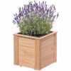 Jede Art von Blumen, Pflanzen und Kräuter können in den Kasten gepflanzt werden. Die Holzart ist für einen dauerhaften Einsatz im Outdoor-Bereich geeignet. Die Pflanzfolie in den Kästen ist wasserdurchlässig, damit sich keine Staunässe bildet.