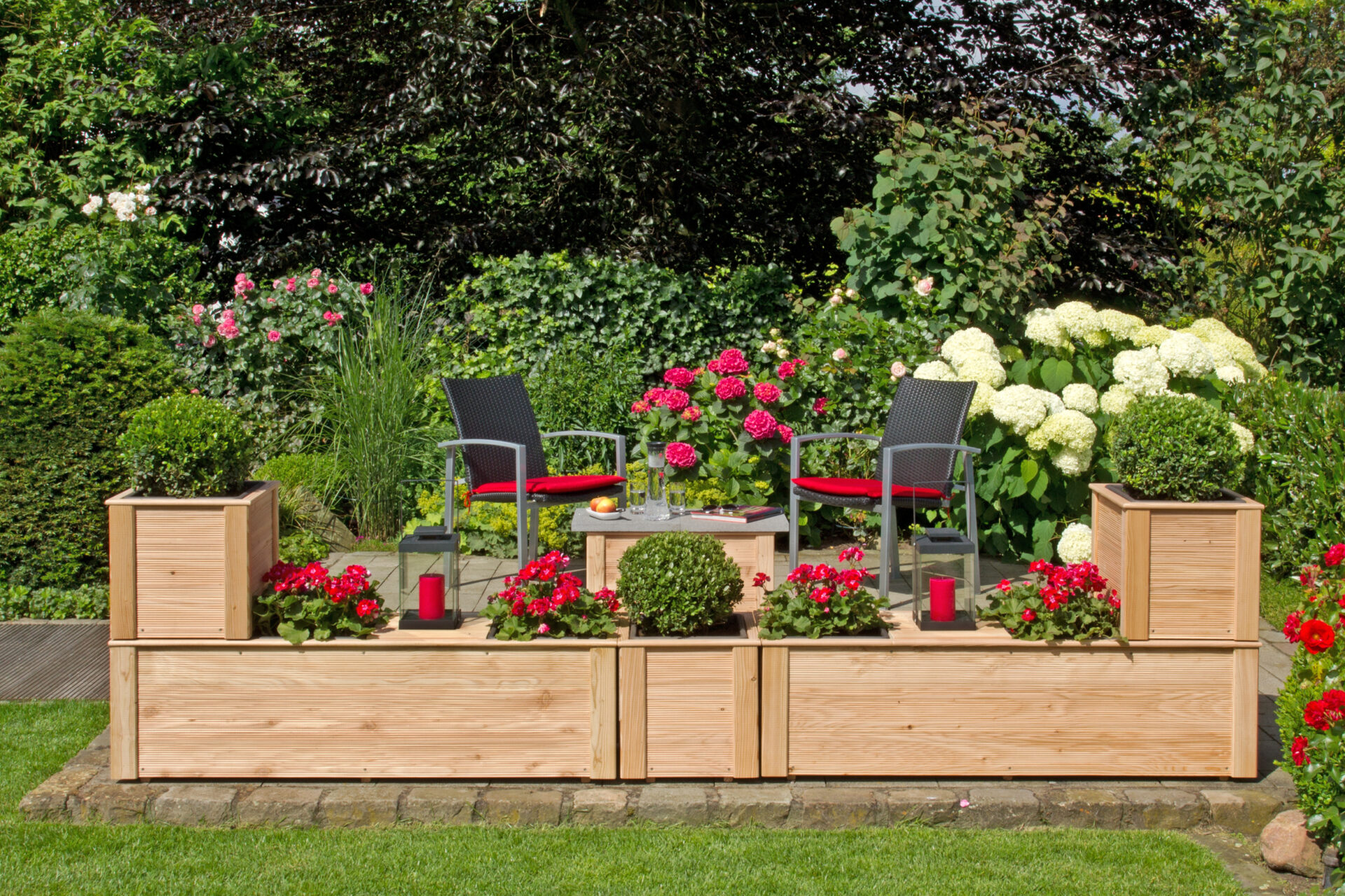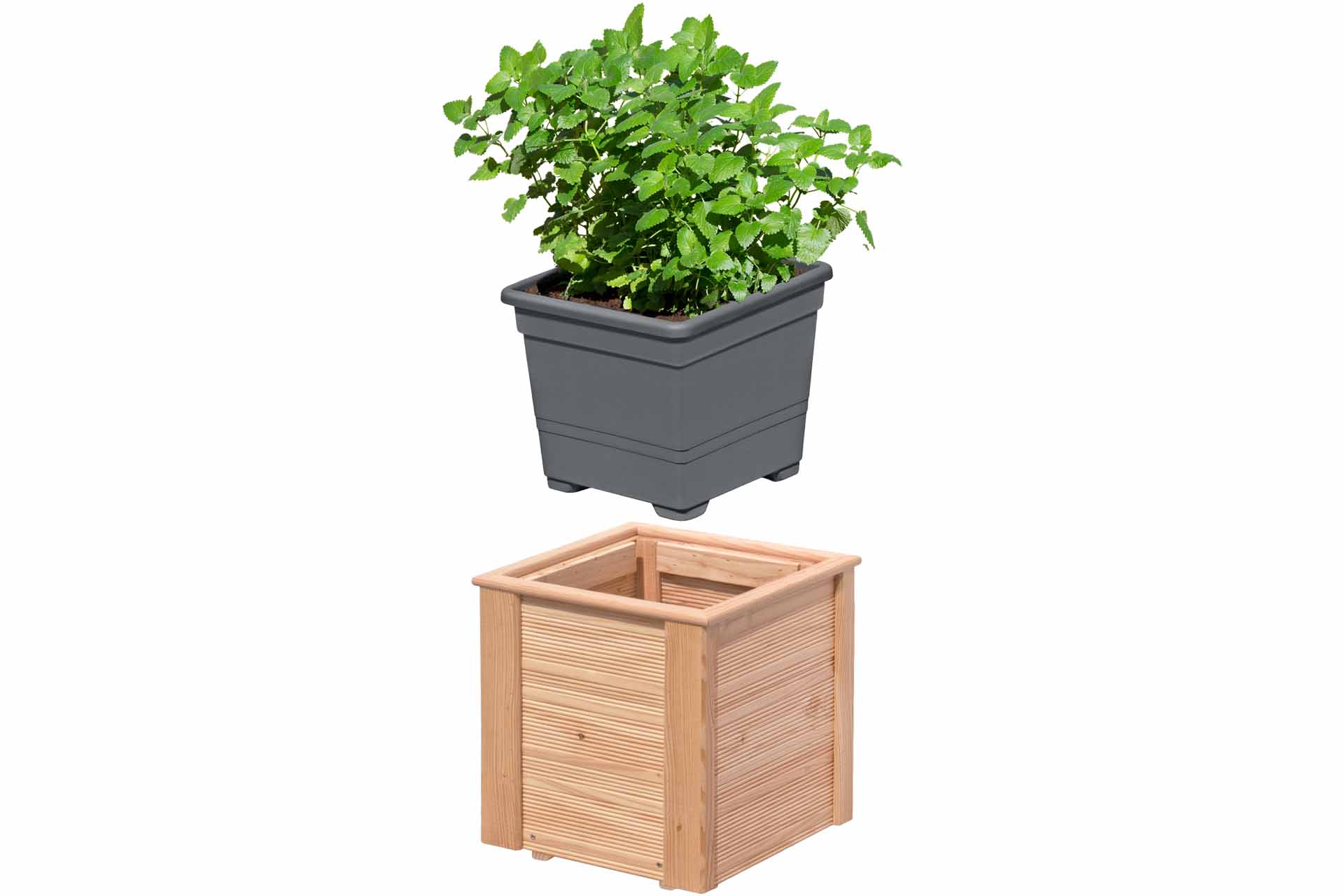 - dank Pflanzkasteneinsatz kein direkter Erdkontakt mit dem Lärchenholz, dadurch garantiert lange Holz-Haltbarkeit.