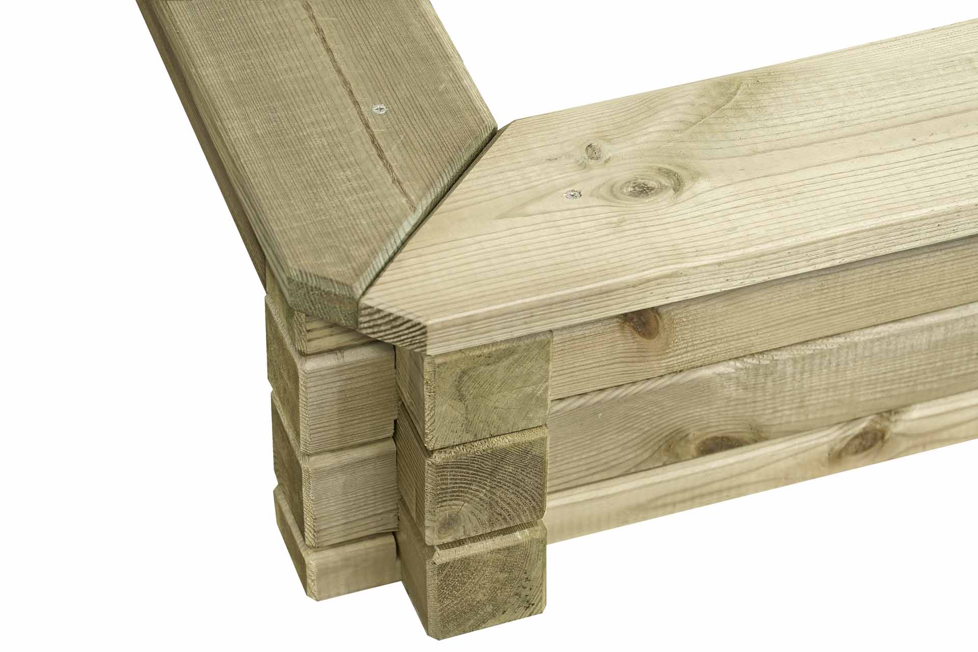 - Material: Kantholz 7 x 7 cm, gehobelt, Kanten gefast